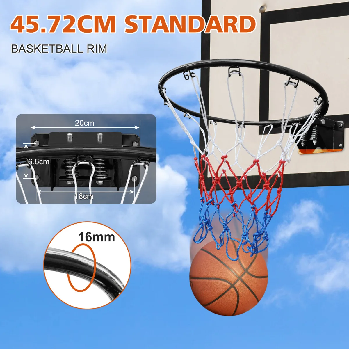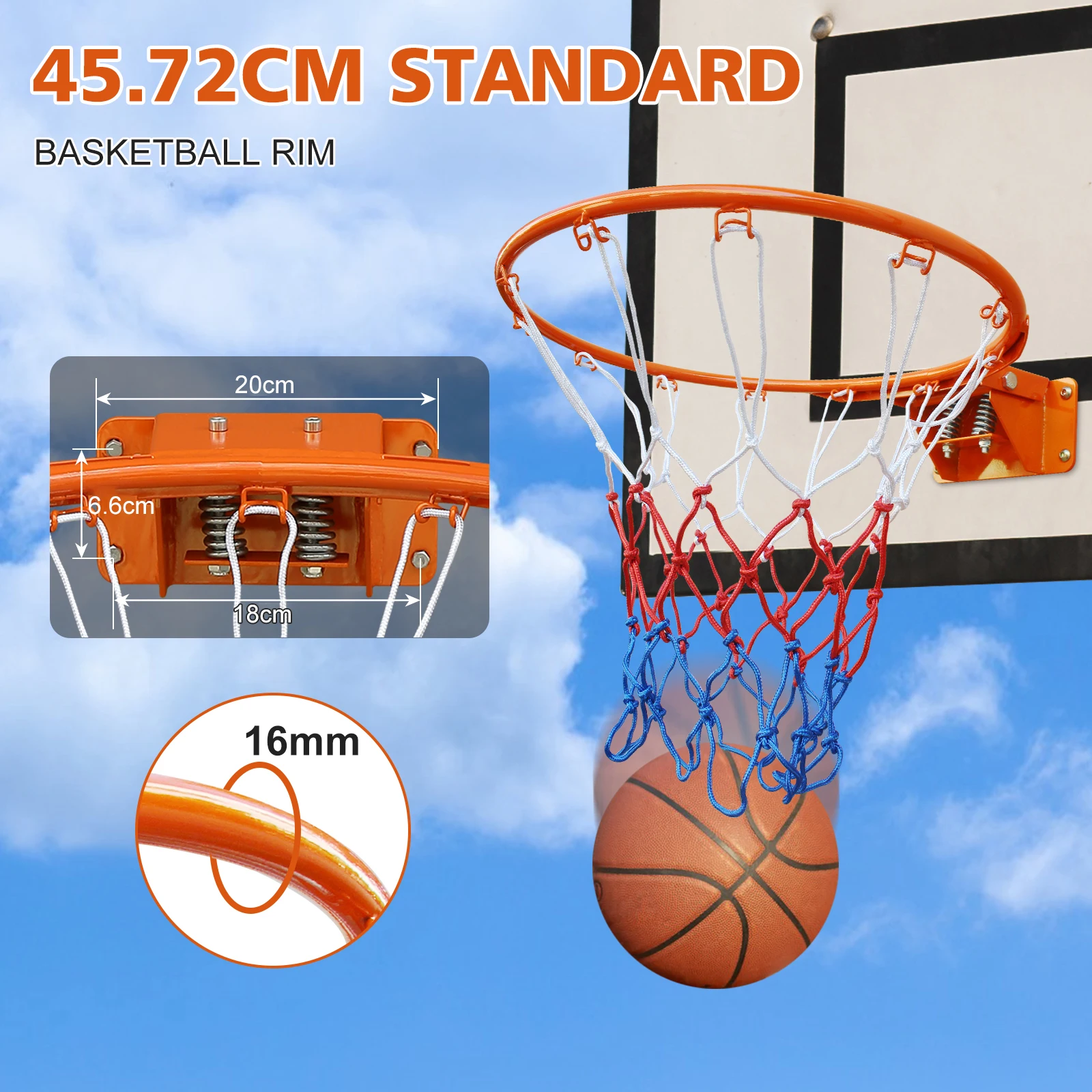 Obręcz do koszykówki 45,72 cm, zamiennik, podwójna sprężyna, solidna obręcz do koszykówki z siatką, pasuje do koszykówek wbudowanych w ziemię i montowanych na ścianie.