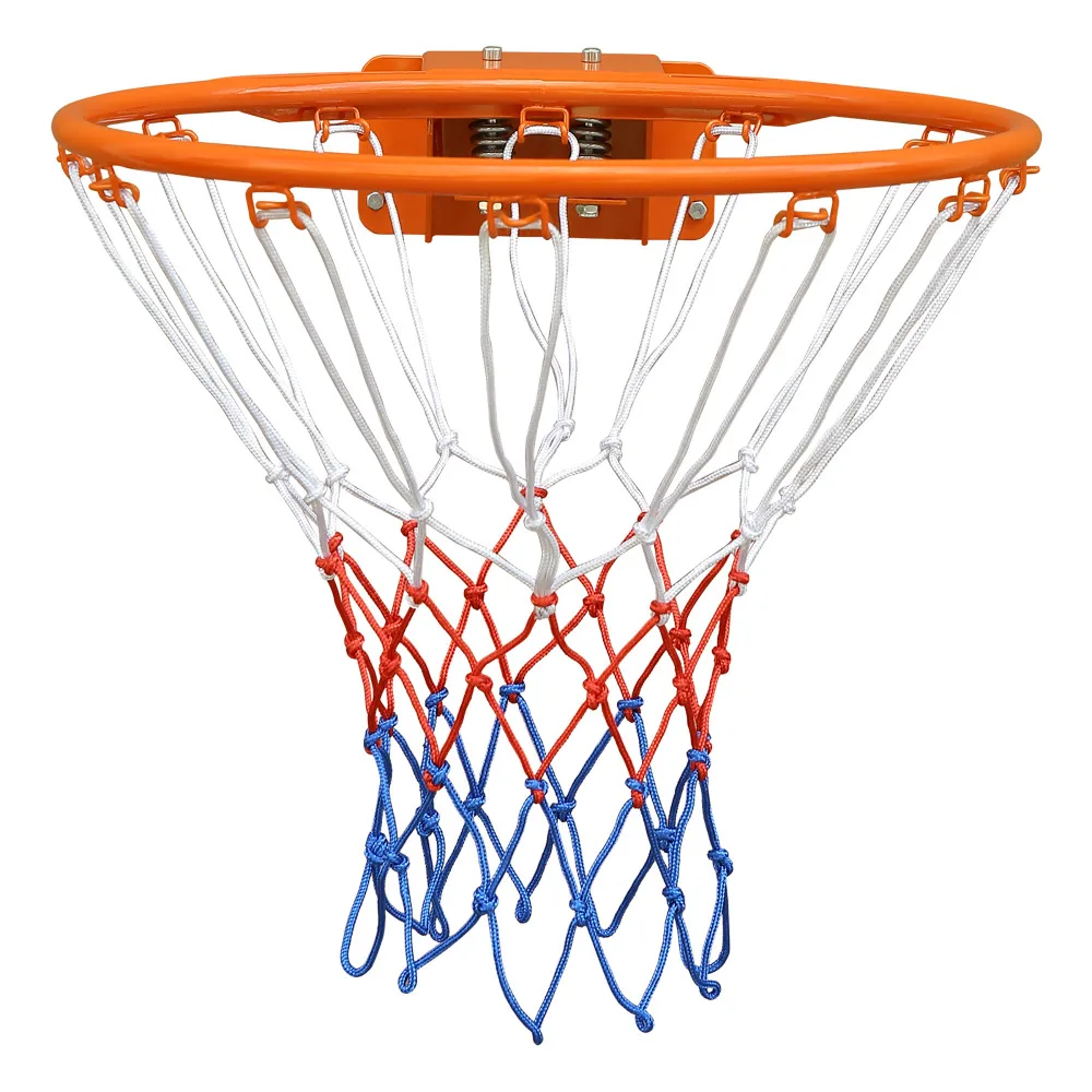 Obręcz koła wymienna o średnicy 45 cm, montowana na ścianie, konstrukcja z podwójnymi sprężynami, powłoka odporna na warunki atmosferyczne, z siatką, kolor pomarańczowy.