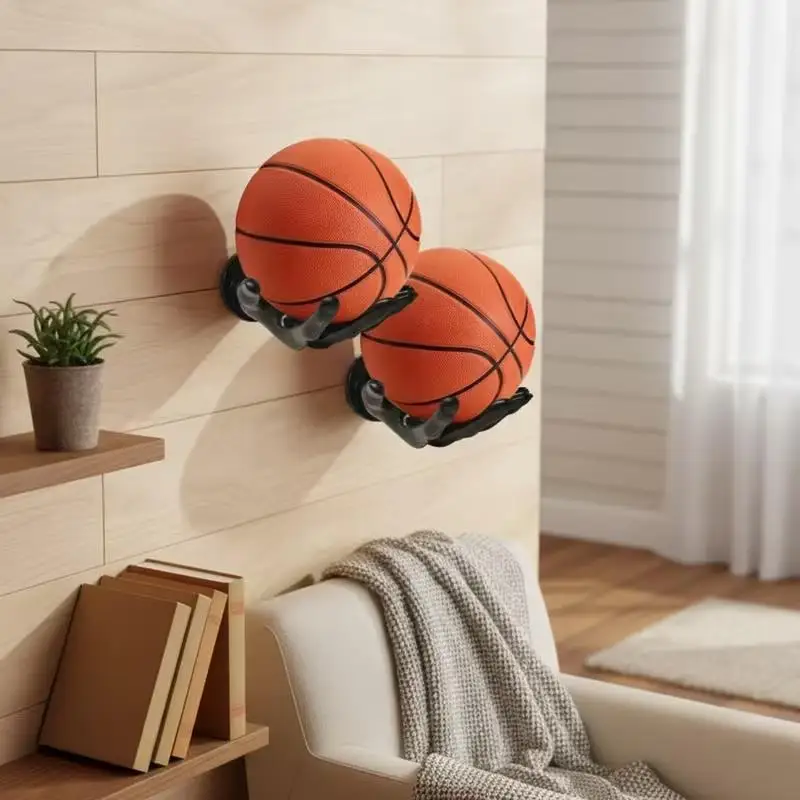 Drewniana metalowa półka ścienna na piłki sportowe, bezinwazyjny uchwyt do przechowywania piłek do koszykówki i piłki nożnej, stojak do ekspozycji i organizacji piłek w pomieszczeniach.