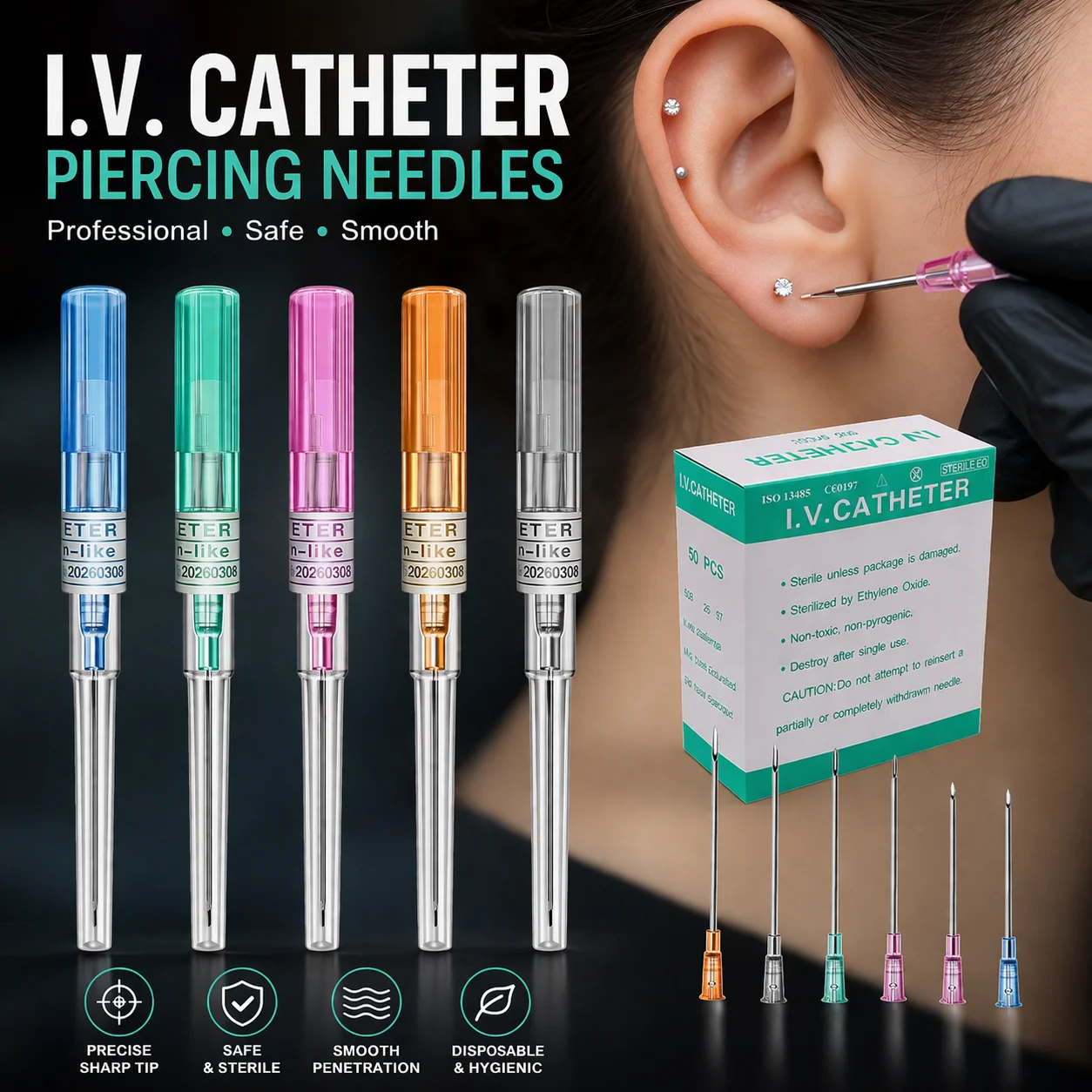 Igła do tatuażu, cewnikowa, do piercingu, ze stali nierdzewnej medycznej, rozmiary 14G, 16G, 18G, 20G, zintegrowany przyrząd, pakowana pojedynczo, sterylna.