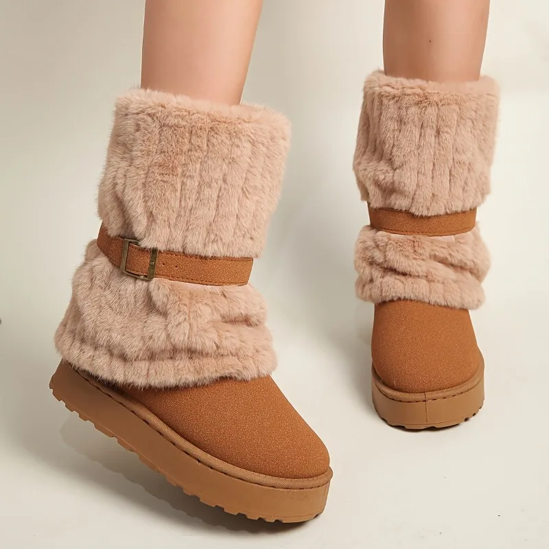 Damskie platformy śniegowce w stylu bohemy, pluszowe, ciepłe buty zimowe dla kobiet, wysokiej jakości zamszowe buty bawełniane, designerskie buty, Botas Mujer