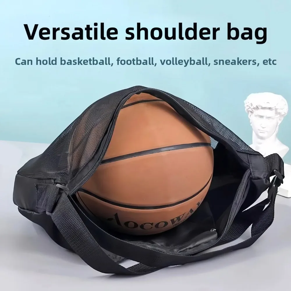 1 SZT. Pojedyncza torba na piłkę z kieszenią na zamek błyskawiczny, siatkowa torba do przechowywania piłek, sprzęt sportowy, siatka do przechowywania ze sznurkiem, torba do przenoszenia koszykówki