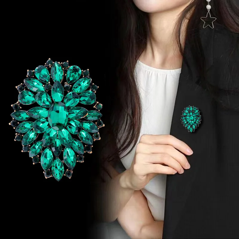 Broszka ze stopu cynku, z kryształkami i szkłem, ozdobna przypinka do kapelusza lub krawata, elegancka, błyszcząca, trwała, idealna na imprezy, wieczorne wyjścia i do pracy dla kobiet.