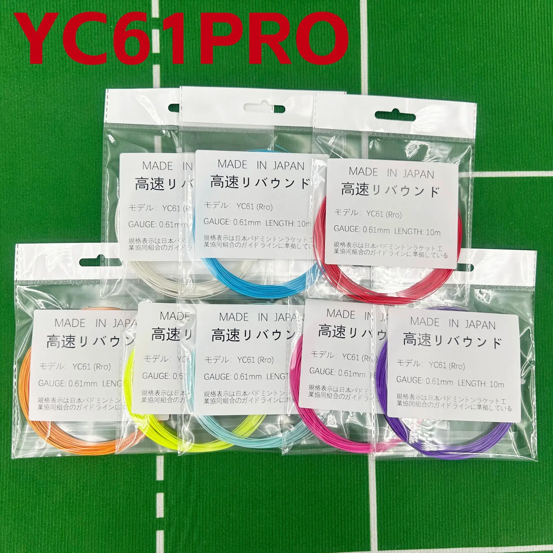 YC61Pro Naciąg do badmintona, grubość 0,61 mm, wysoka elastyczność/chrześcietny dźwięk, struna do badmintona