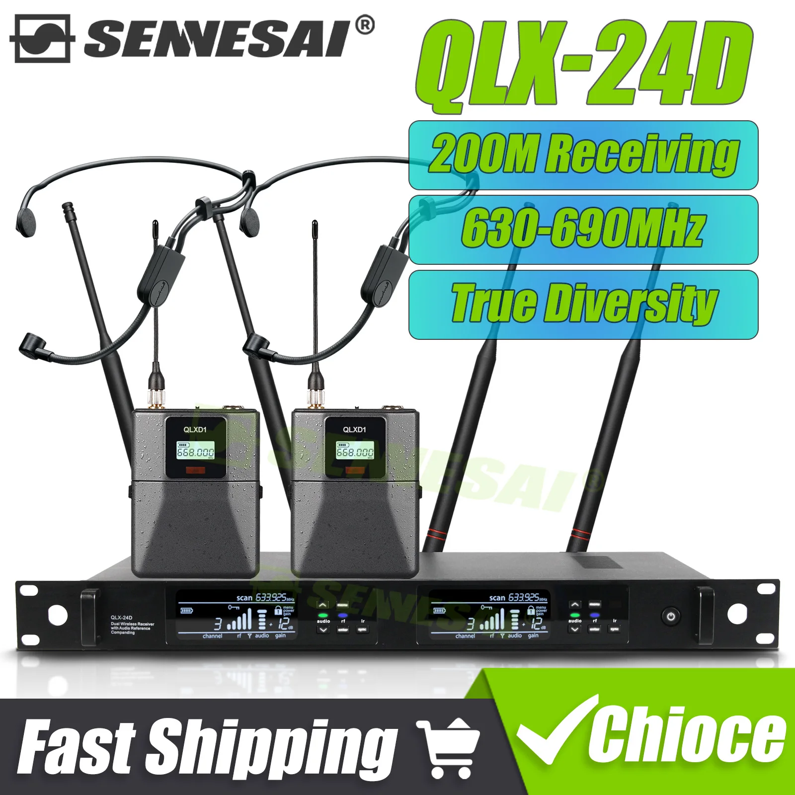 Mikrofon nagłowny Tan HM200 z podwójnymi zatyczkami do słuchawek, kompatybilny z Sennheiser EW122 G3 G4, bezprzewodowy, z mocowaniem na klatkę piersiową, złącze 3,5 mm z blokadą.