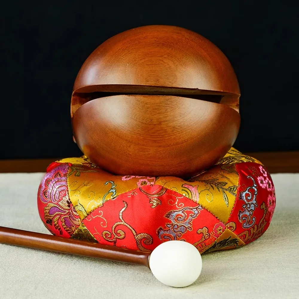 12-calowy zestaw instrumentów perkusyjnych z litego drewna kamforowego z Tajwanu, w kolorze brązowo-czerwonym, do templic buddyjskich, rytuałów i użytku domowego.