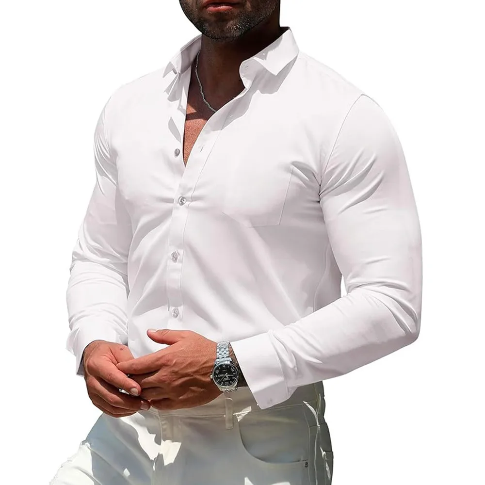 Męska koszula z długim rękawem na wiosnę i jesień, biała, gładka, w stylu casual, lekko elegancka, uniwersalna, idealna jako koszula wewnętrzna do garnituru.