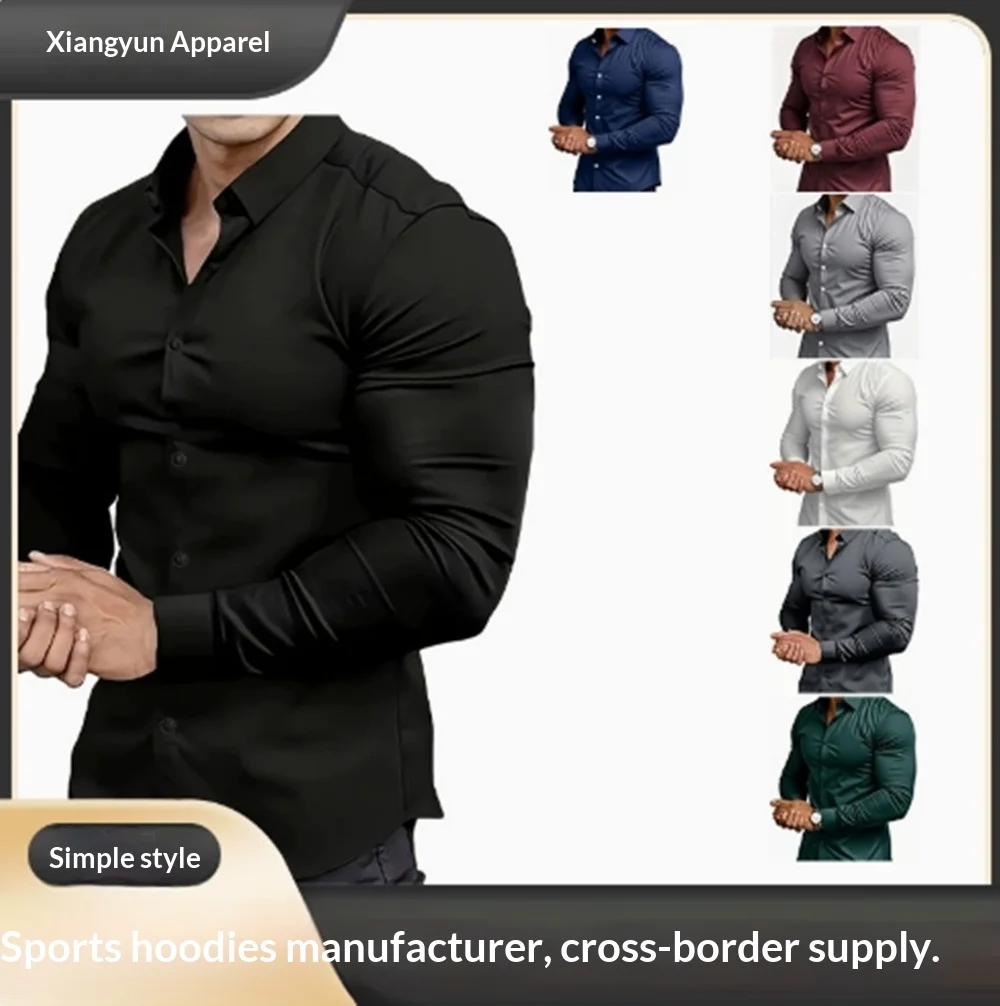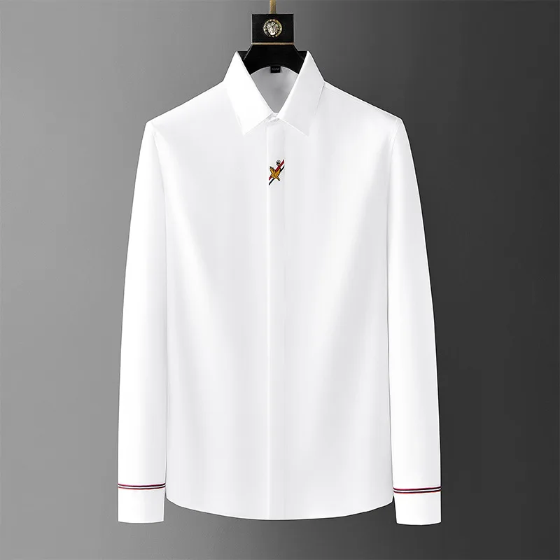 Męska koszula na wiosnę i jesień, nowy styl, amerykański retro, gładka, nie wymaga prasowania, modna, biznesowa, wysokiej jakości, dopasowana, casualowa.