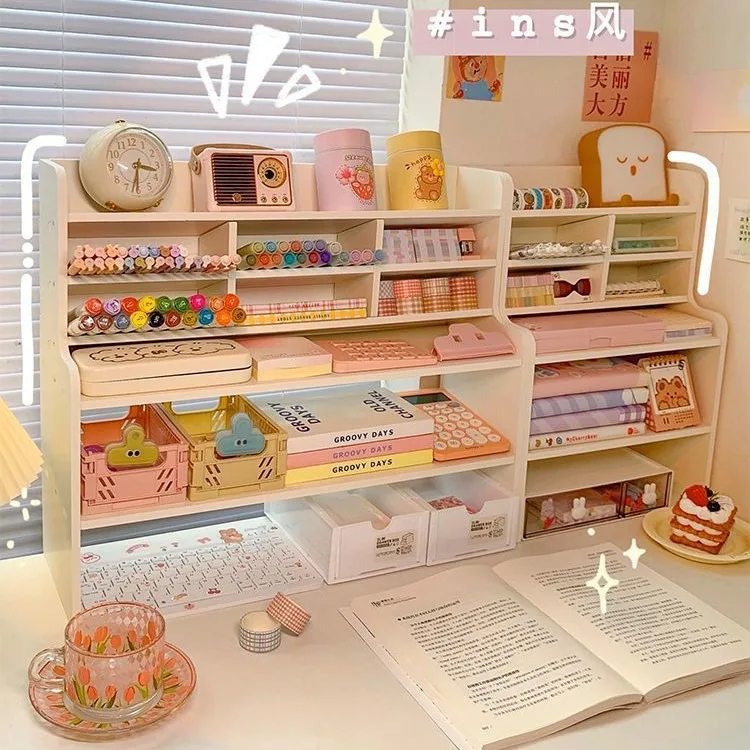 Ins Półka na biurko Akademik studencki Stojak do przechowywania na biurko Biurko do organizowania artykułów piśmiennych Wielowarstwowa mała półka na książki