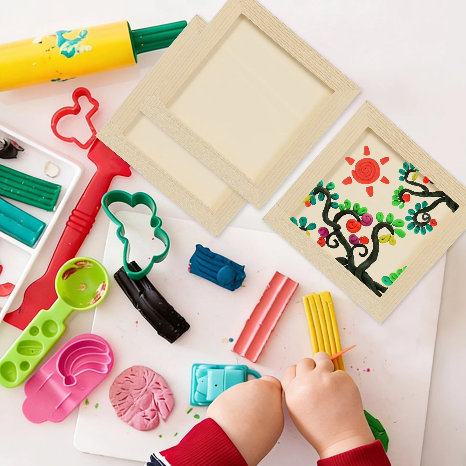 6 szt. Drewniane Ramki na Zdjęcia DIY dla Dzieci, Puste Ramki Dekoracyjne do Rękodzieła, Ramki na Zdjęcia z Gliny, Drewniane Ramki na Zdjęcia do Dekoracji Ścian w Domu, Ramki Drewniane 3D
