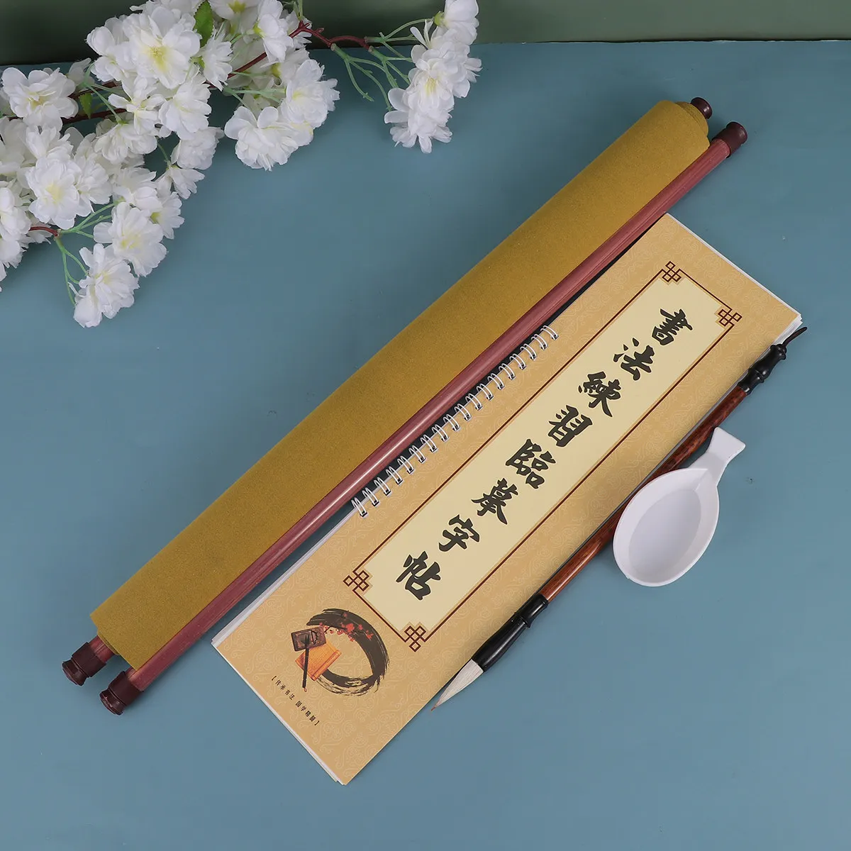 4 szt. 1,5m Tkanina do pisania wodą z siatką ryżową, zestaw do ćwiczeń kaligrafii, pędzel, zeszyt do kopiowania, miseczka na tusz, narzędzia do nauki dla początkujących