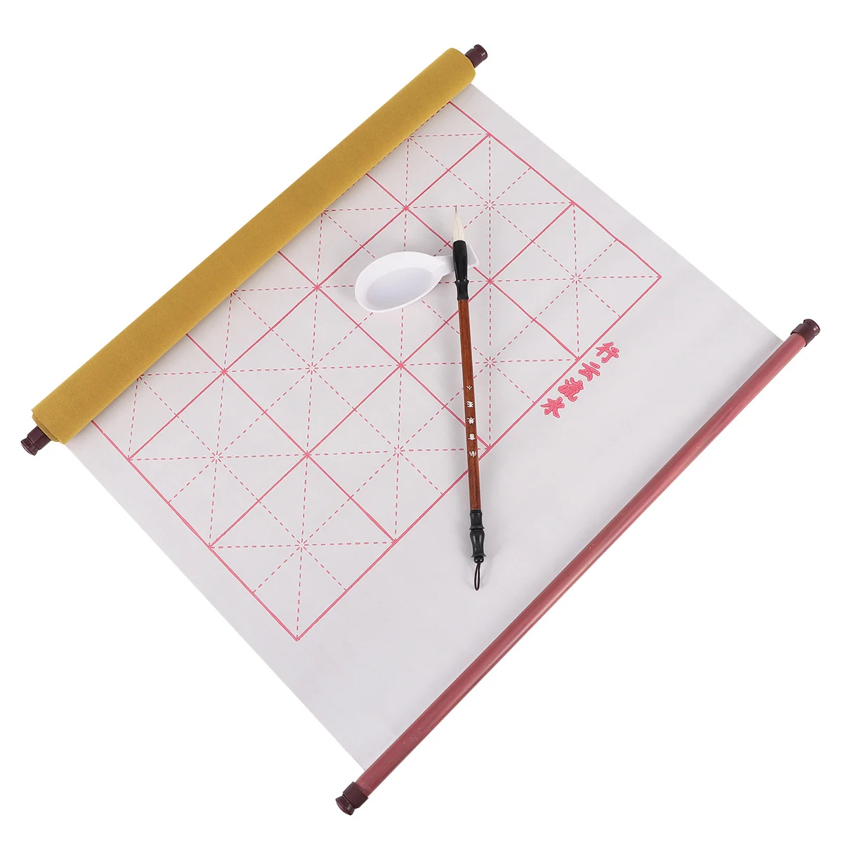 4 szt. 1,5m Tkanina do pisania wodą z wzorem ryżu, zestaw do treningu kaligrafii zawiera pędzel, zeszyt do kopiowania i tackę na wodę do ćwiczeń pisania