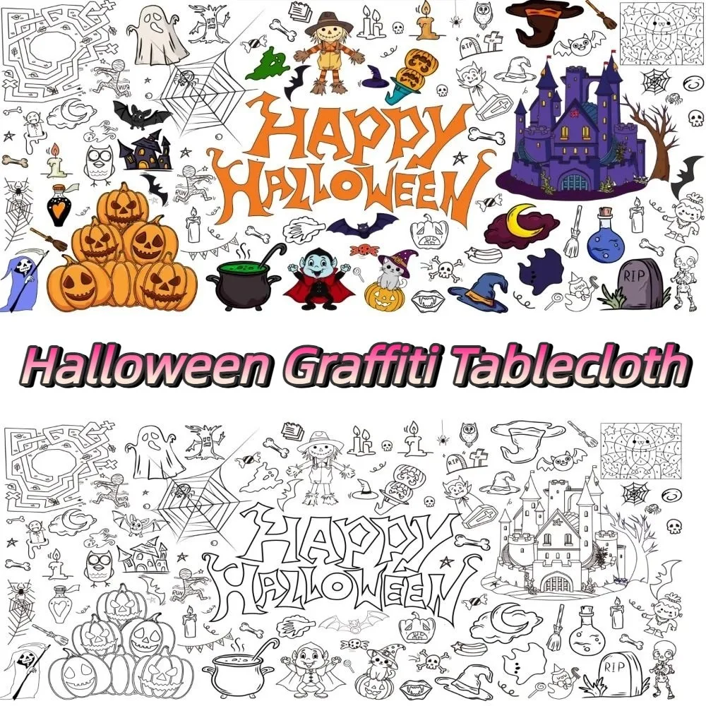 Kreatywny obrus na Halloween z graffiti, ręcznie robiony, do samodzielnego malowania, duże plakaty do kolorowania, kolorowe obrusy na imprezy DIY, prezenty.