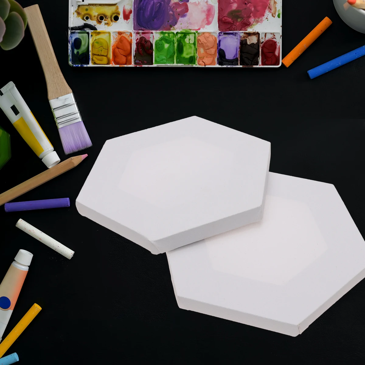 2 szt. Ramka do malowania olejnego, nieregularna tablica do rysowania na płótnie, styl sześciokątny, biała, 20 cm, trwała, kreatywny panel do samodzielnego malowania dla studentów.