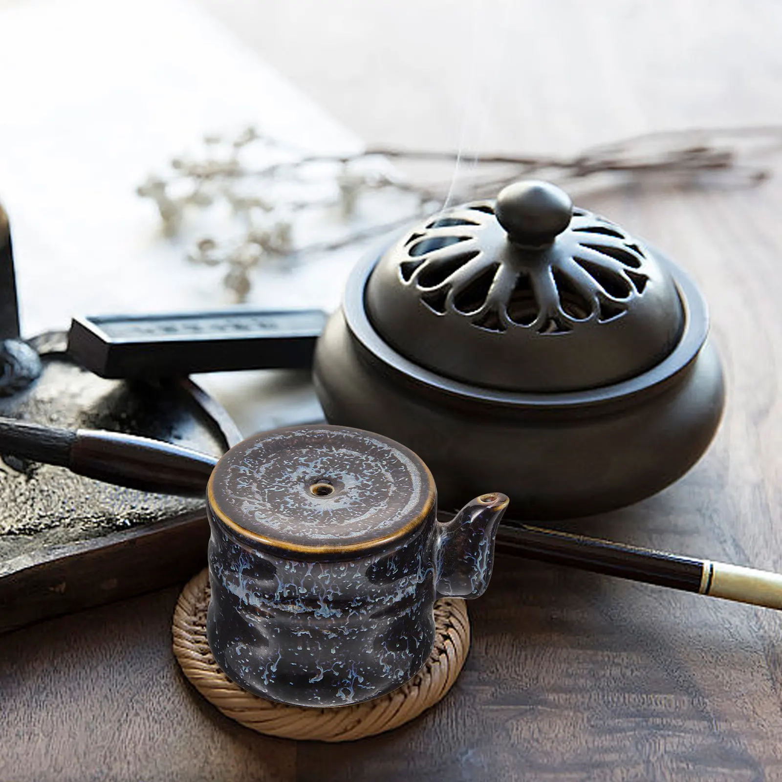 Tradycyjna ceramiczna miseczka na tusz z kroplomierzem do kaligrafii, do malowania pędzlem, akcesoria do mielenia tuszu, dekoracja do domu i gabinetu, funkcjonalna.