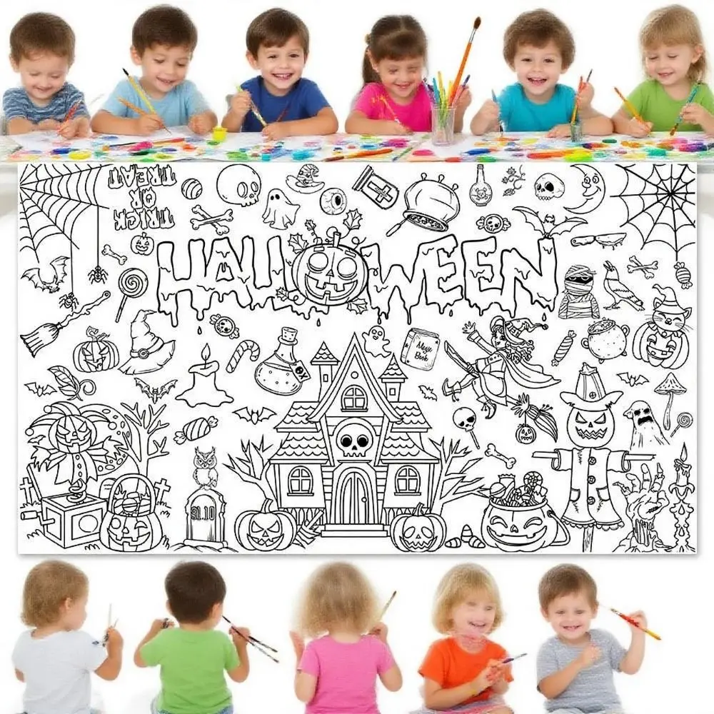 Kreatywny obrus na Halloween z graffiti, ręcznie robiony, do samodzielnego malowania, duże plakaty do kolorowania, kolorowe, kreskówkowe obrusy DIY na przyjęcia, prezenty.