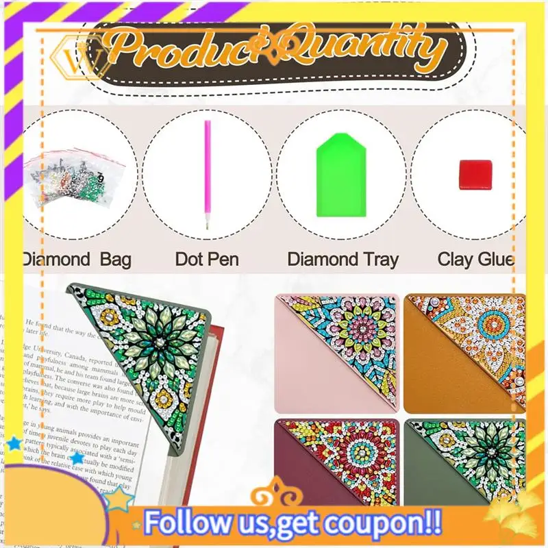Najnowsze 4 szt. Zakładek do książek z diamentowymi obrazami, DIY diamentowe zakładki do książek dla miłośników książek, zestawy do robienia trójkątnych zakładek narożnych