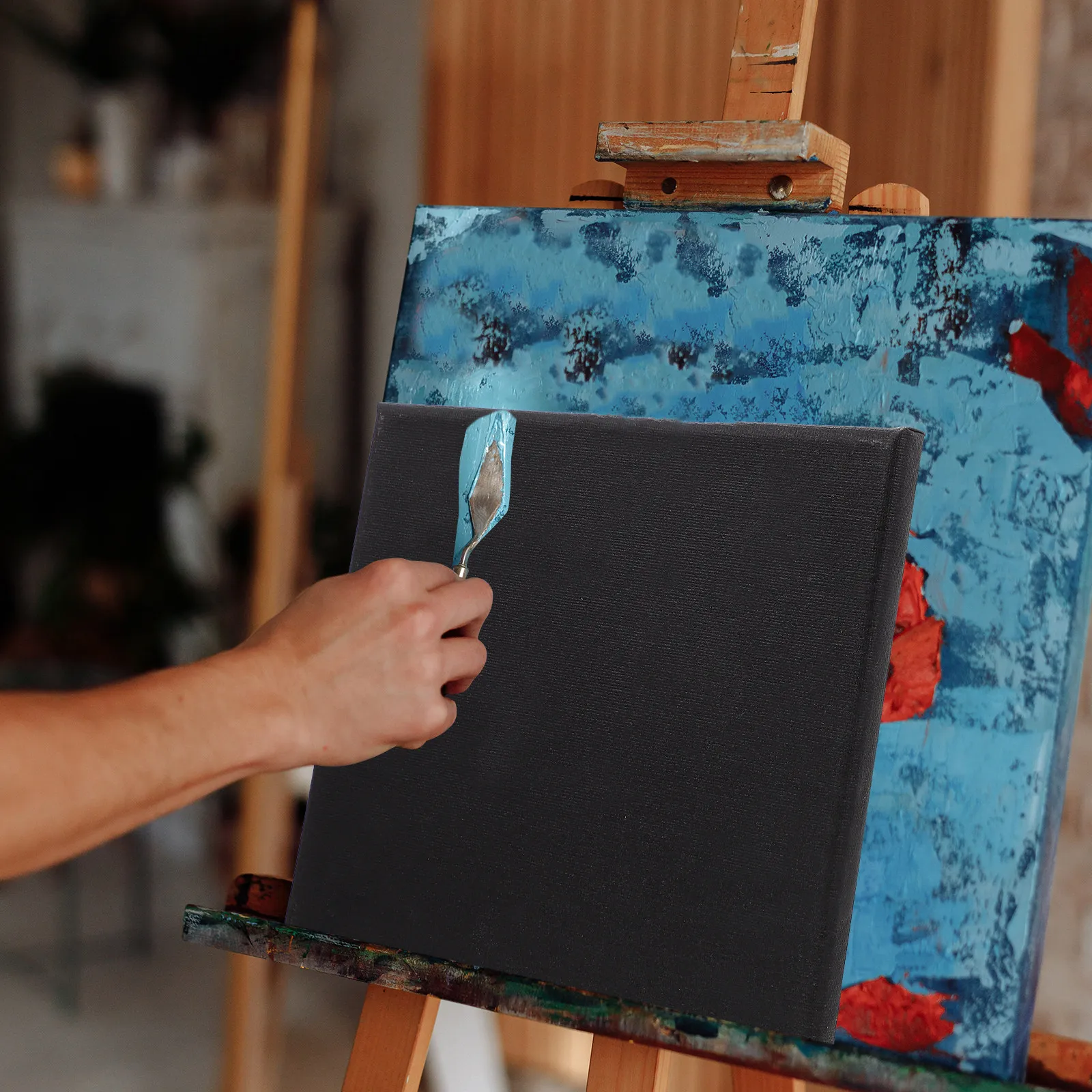 1/2szt Czarne płótno Drewniana ramka do malowania olejnego Płótno bawełniane Graffiti Ramka na płótno dla dzieci Materiały do ćwiczeń dla początkujących