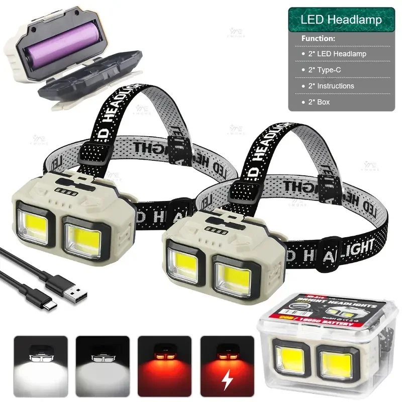 Latarka czołowa LED COB, ładowalna, wodoodporna, robocza, oświetlenie bezpieczeństwa, latarka czołowa do użytku na zewnątrz, na kemping, wędkowanie.
