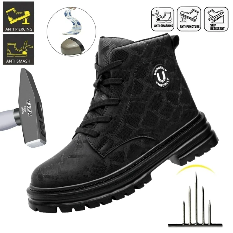 Damskie buty robocze ochronne ze stalowym noskiem, antyprzebiciowe, antypoślizgowe, lekkie i oddychające, wysokie, przemysłowe buty robocze.
