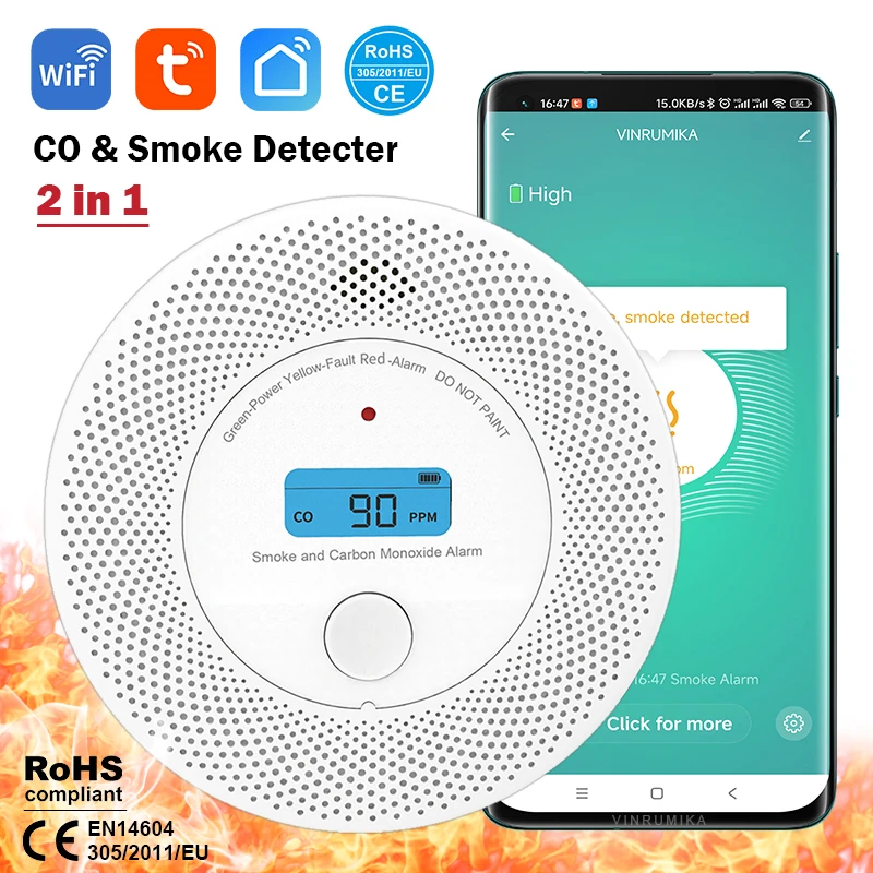 Tuya Inteligentny czujnik dymu WiFi Alarm przeciwpożarowy Współpracuje z informacją aplikacji Smart Life Push Inteligentny system bezpieczeństwa w domu