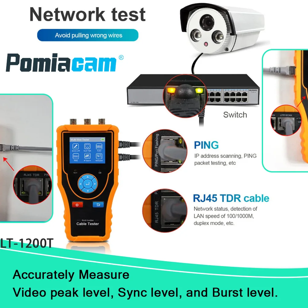 Tester sieciowy All-in-One LT-1200T, lokalizator kabli, tester TDR, pomiar długości kabla, PoE, PING, skaner IP, 2,4-calowy, odporny na zakłócenia