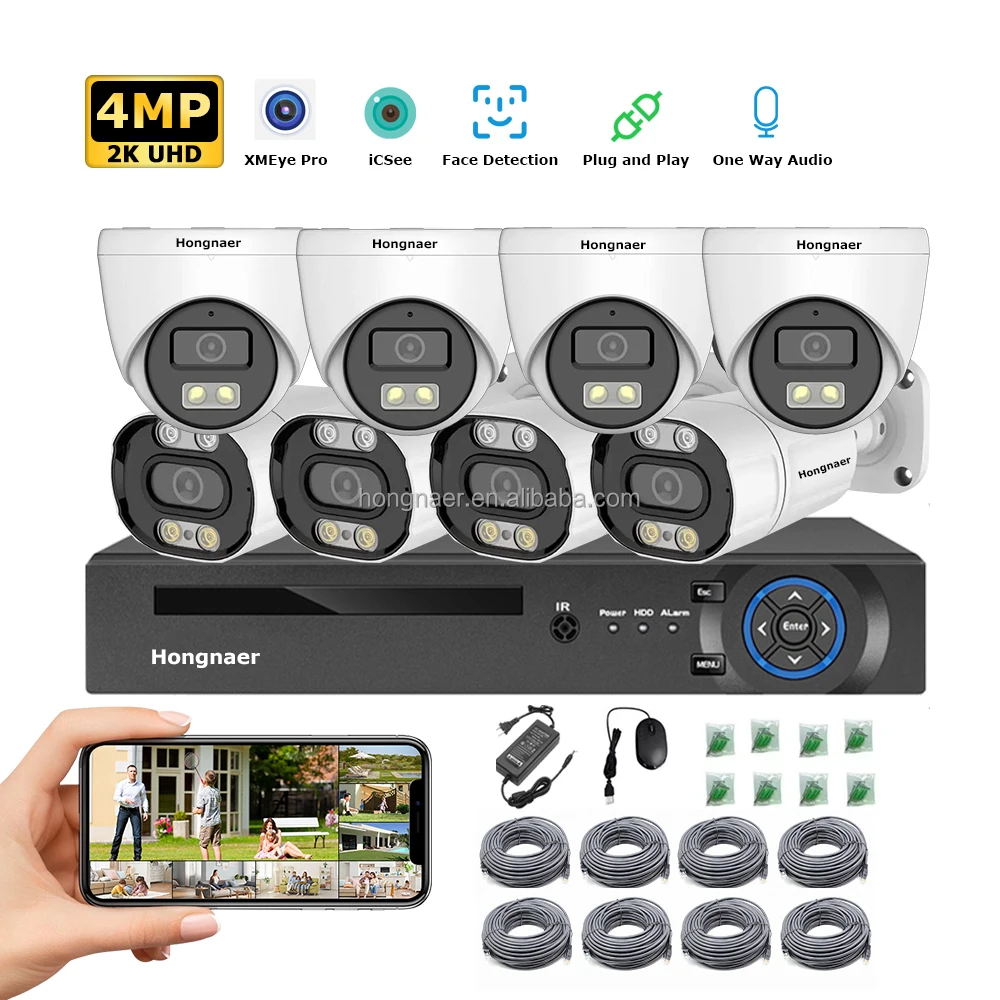 Hongnaer 4MP 8-kanałowy zestaw kamer IP POE NVR do monitoringu domu, wewnętrzny i zewnętrzny, system CCTV z noktowizorem, bezprzewodowy system nadzoru wideo