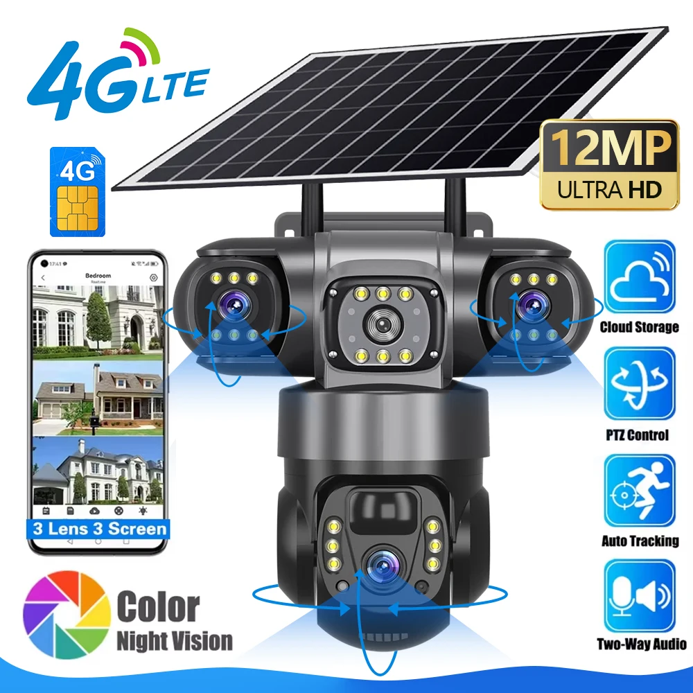 Kamera IP V380 12MP 6K Solarna 4G Zewnętrzna Trzy Obiektywy Trzy Ekrany Monitoring Wideo Bezpieczeństwa Noktowizor Wodoodporna Kamera CCTV