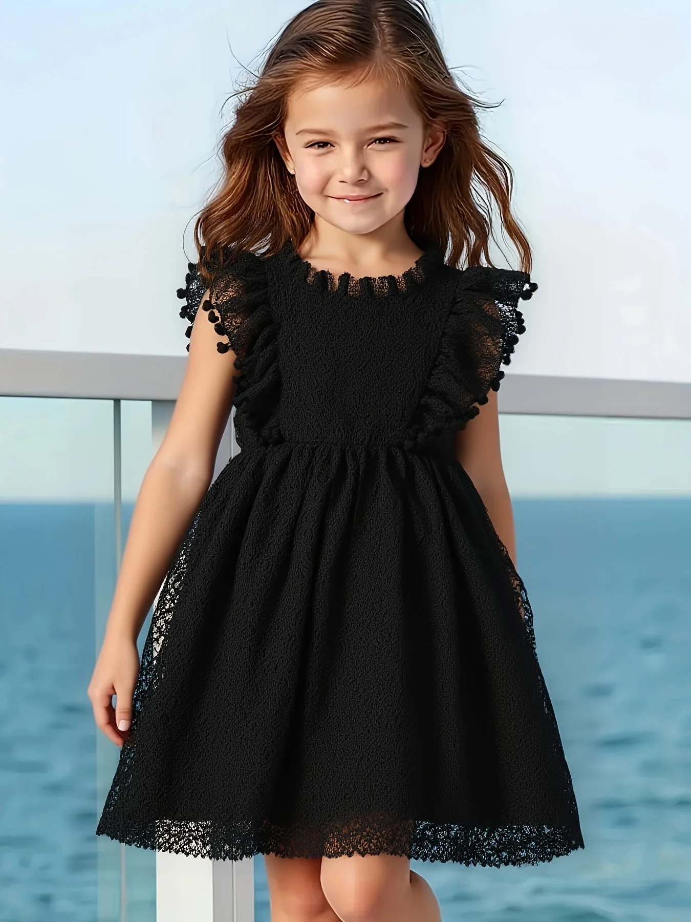 Letnia nowość: złota haftowana koronka, sukienka z dekoltem typu halter, warstwowa sukienka z siateczki z kwiatowym haftem, sukienka bez rękawów dla dziewczynek, urocza i swobodna.