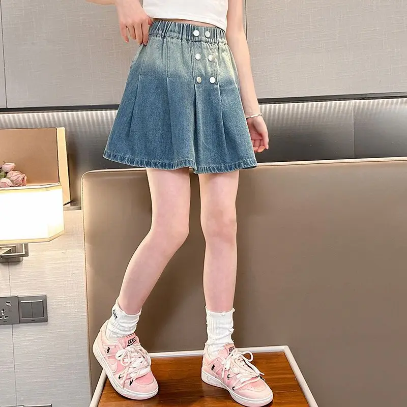 Dżinsowa spódniczka letnia dla dziewczynek 2026, mini spódniczka w kształcie litery A, nowość, codzienna, urocza, stylowa krótka spódniczka dla starszych dziewczynek w wieku 7-14 lat.