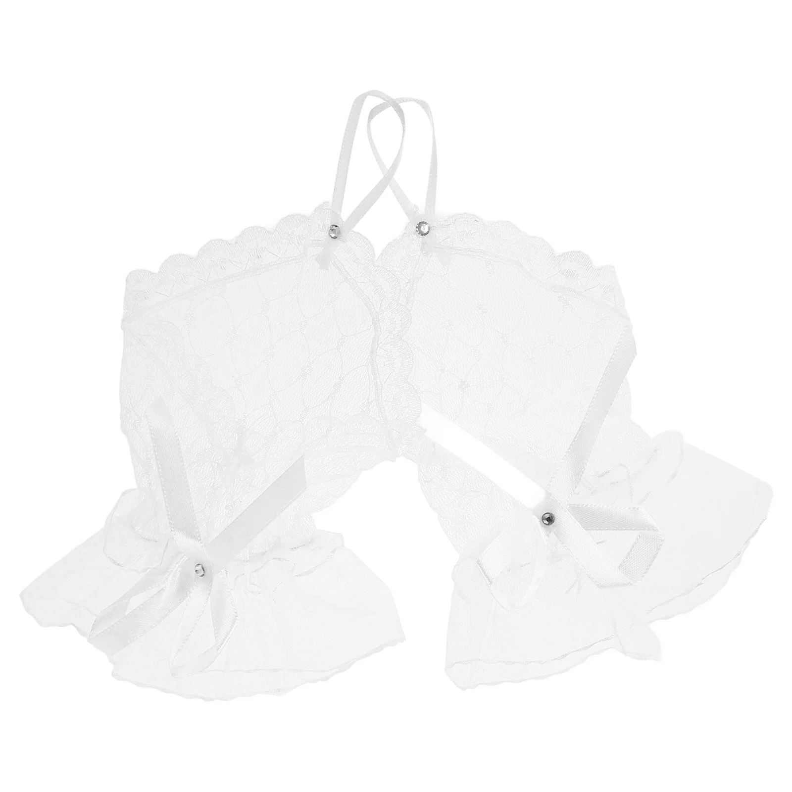 Rękawiczki bez palców z koronki, białe, przezroczyste, z kokardką, zdobione cyrkoniami, ślubne, dla druhen, na przyjęcie herbaciane, akcesoria, rękawiczki koronkowe.
