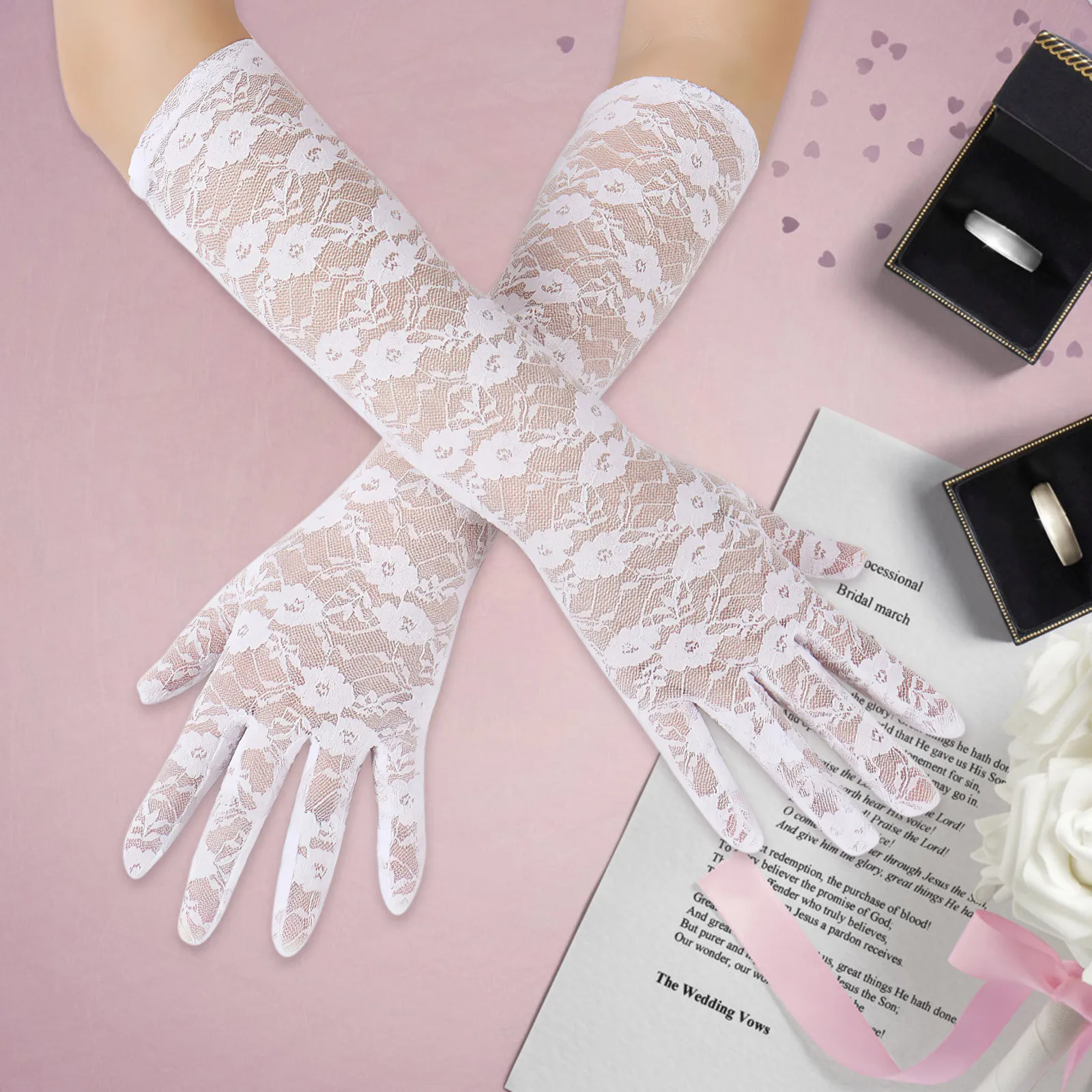 1 Para Koronkowych Rękawiczek Damskich Białe Vintage Bez Palców Długość Do Łokcia Na Wesele Przyjęcie Herbatę Bal Studniówkowy Wieczór Ślubny Formalne Okazje
