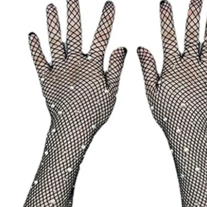 Czarne Białe Czerwone Długie Rękawiczki z Siatki z Cyrkoniami ażurowe Rękawiczki Damskie z Siatki Rybackiej Rękawiczki z Palcami Fantazyjne Rękawiczki Cosplay z Siatki Rybackiej