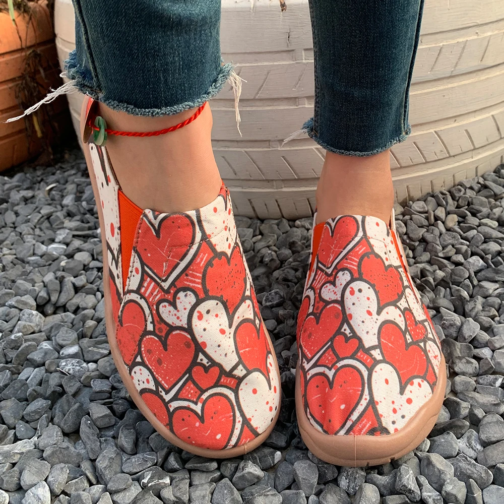 Para damskich sneakersów casualowych na zewnątrz, butów trekkingowych, butów do biegania, nowa kolekcja wiosna 2026, walentynkowy wzór serca, modny prezent na sezon podróży, buty damskie.