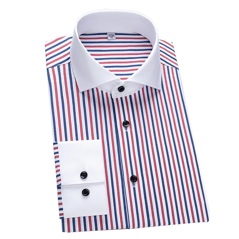 Męska koszula Oxford z długim rękawem, 100% bawełna, odporna na zmarszczki i oddychająca, jednolita, w kratę, w paski, wygodna, codzienna koszula zapinana na guziki.