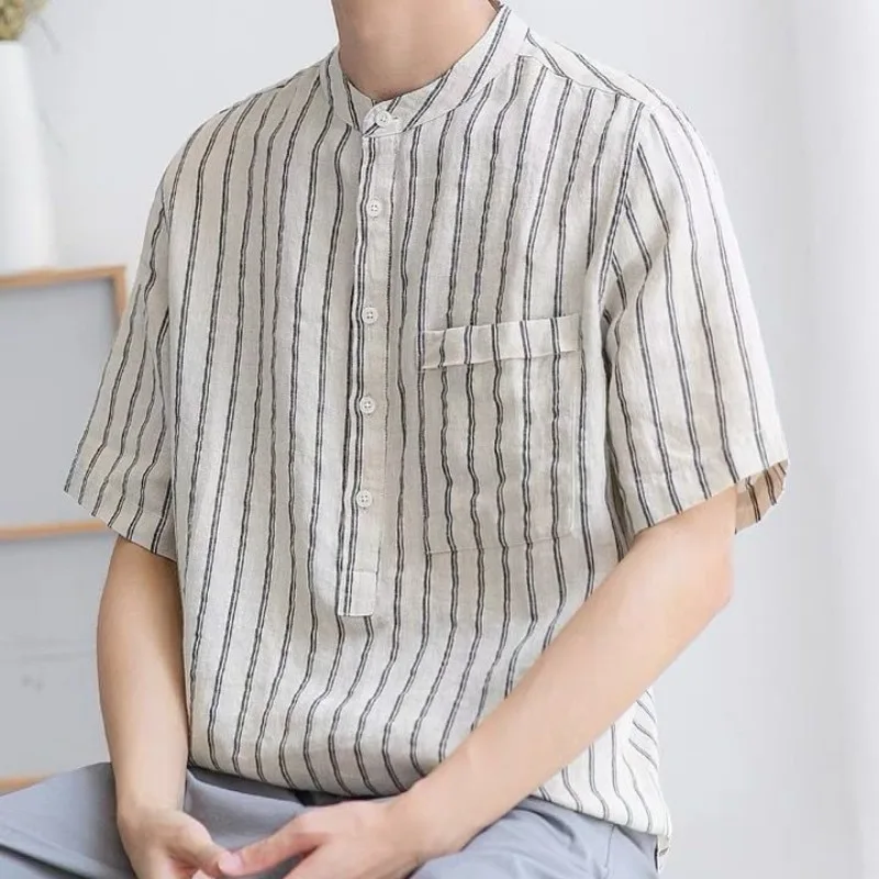 Męska lniana koszula z krótkim rękawem z nadrukiem etnicznym totemu roślinnym HD, koszula hawajska na wędkowanie i do aktywności na świeżym powietrzu, odzież męska, szybka wysyłka, 2026