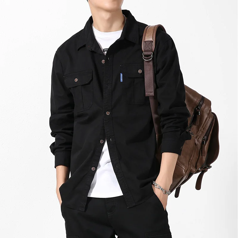 Męska koszula w paski w stylu retro na wiosnę i jesień, bawełniana koszula z długim rękawem, nowa modna koszula robocza, męska kurtka młodzieżowa z podwójnymi kieszeniami, cienki płaszcz.