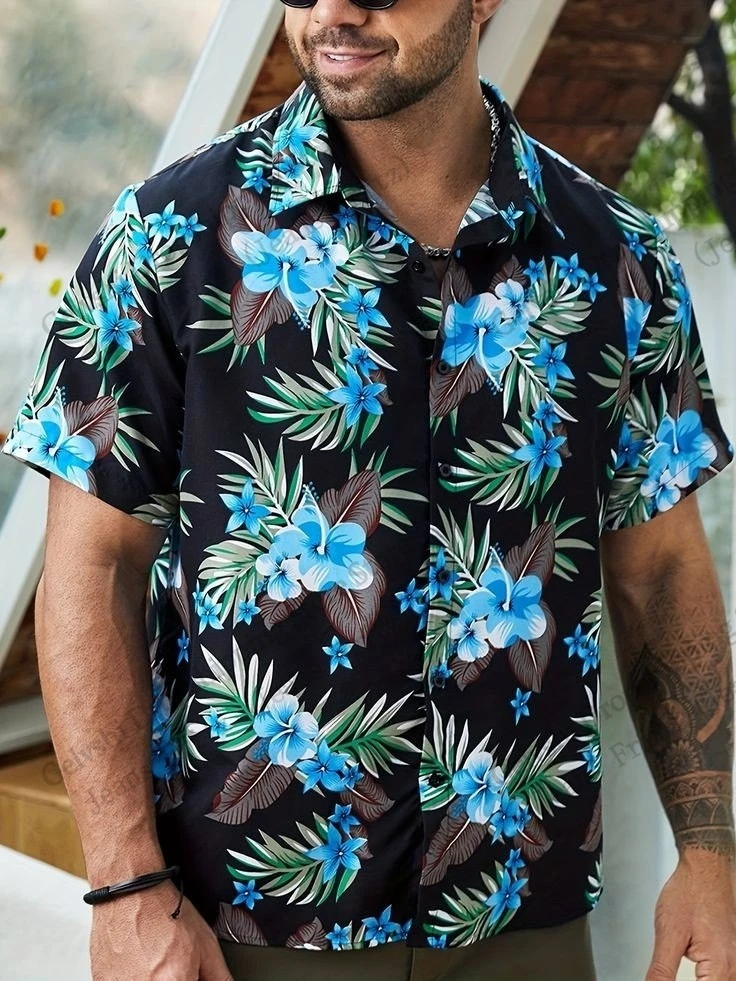 Letnia hawajska zabawna koszula dla mężczyzn z nadrukiem 3d Luźne hawajskie topy plażowe Casualowa bluzka z krótkim rękawem i klapami Odzież męska Streetwear