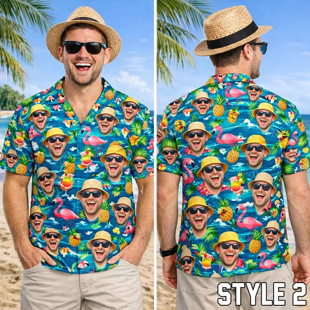 Koszula hawajska z własnym nadrukiem, zabawna koszula letnia na plażę, personalizowana koszula na tropikalne wakacje, prezent dla mężczyzn, taty, męża.