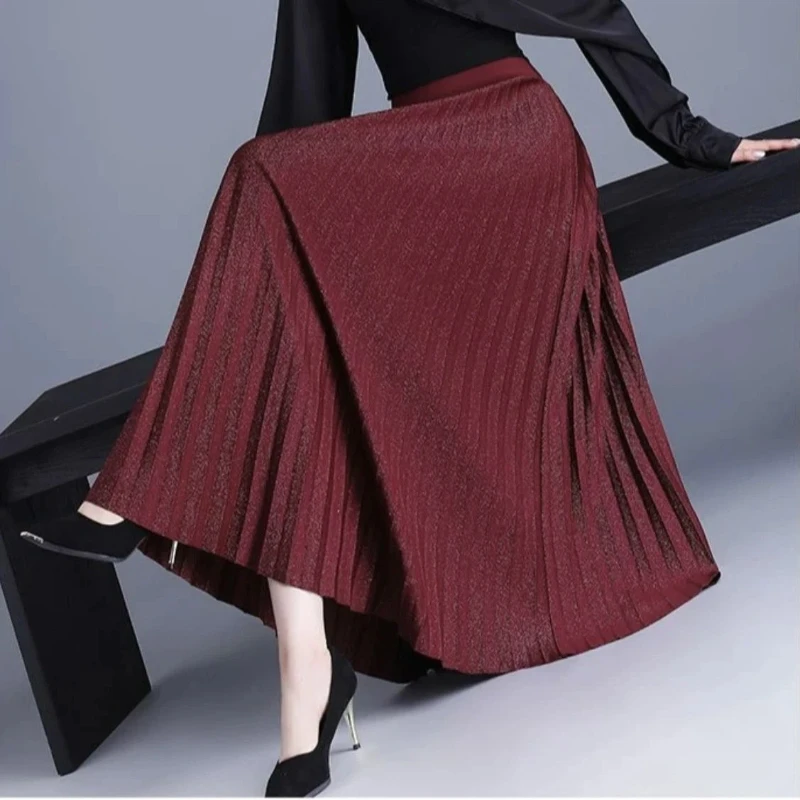 Długa wełniana spódnica damska na jesień i zimę, z wysokim stanem, jednolita, zapinana na klamrę, uniwersalna, z podwójnymi kieszeniami, luźna, wyszczuplająca spódnica z dzianiny kaszmirowej.