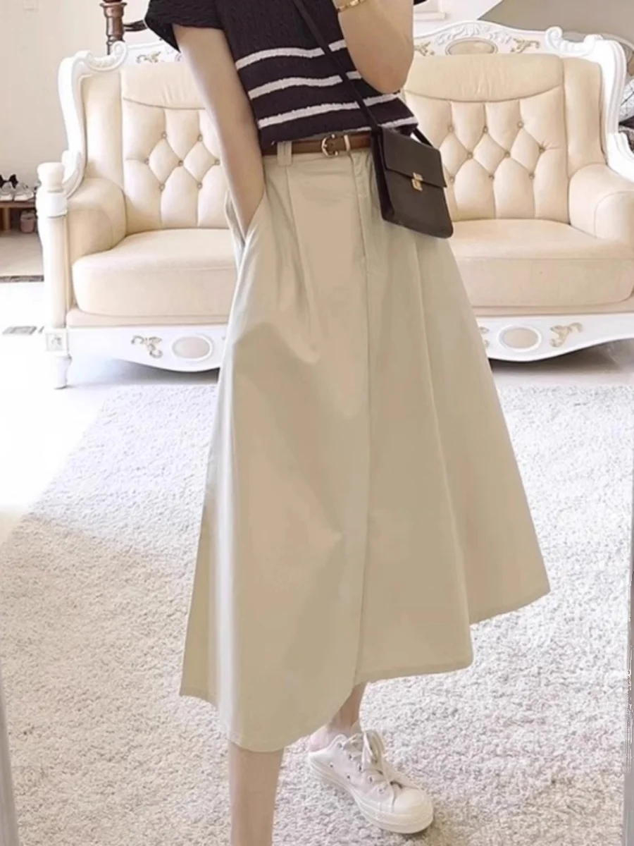 Spódnica do połowy długości, dziecięca letnia nowa wyszczuplająca spódnica w kształcie litery A z wysokim stanem, spódnica Yamamoto o małym wzroście inspirowana Zenem