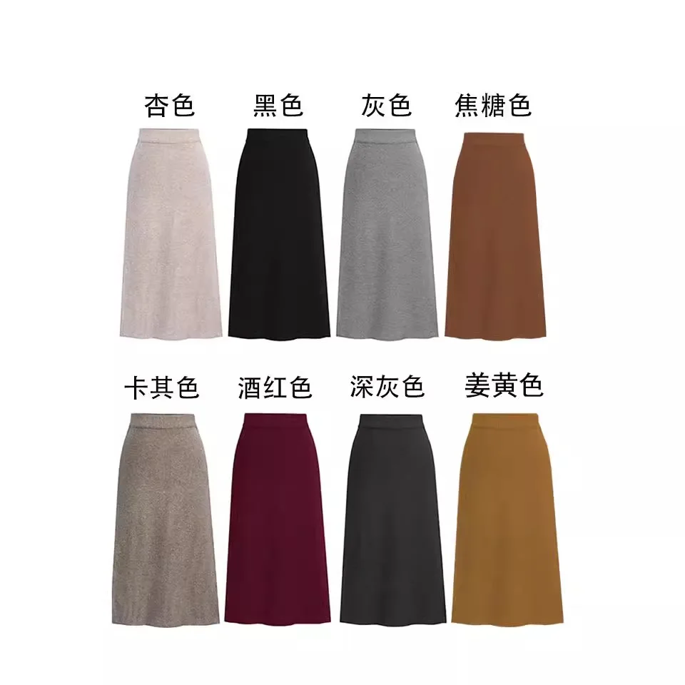 Spódnica modelująca sylwetkę, wysokiej jakości spódnice z prążkowanej dzianiny, spódnica midi z rozcięciem z boku, rozciągliwa spódnica bodycon plus size.