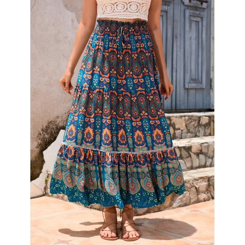 Spódnica w stylu śródziemnomorskim, delikatna, szydełkowa, haftowana, podkreślająca figurę, z falbankami, idealna na wakacje nad morzem, spódnice maxi.