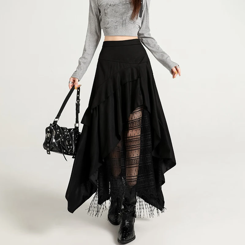 2025 nowa damska linia A MiNi spódnica do połowy długości modna elegancka wszechstronna seksowna wzburzona krawędź fałszywy sznurek bardzo krótka spódniczka