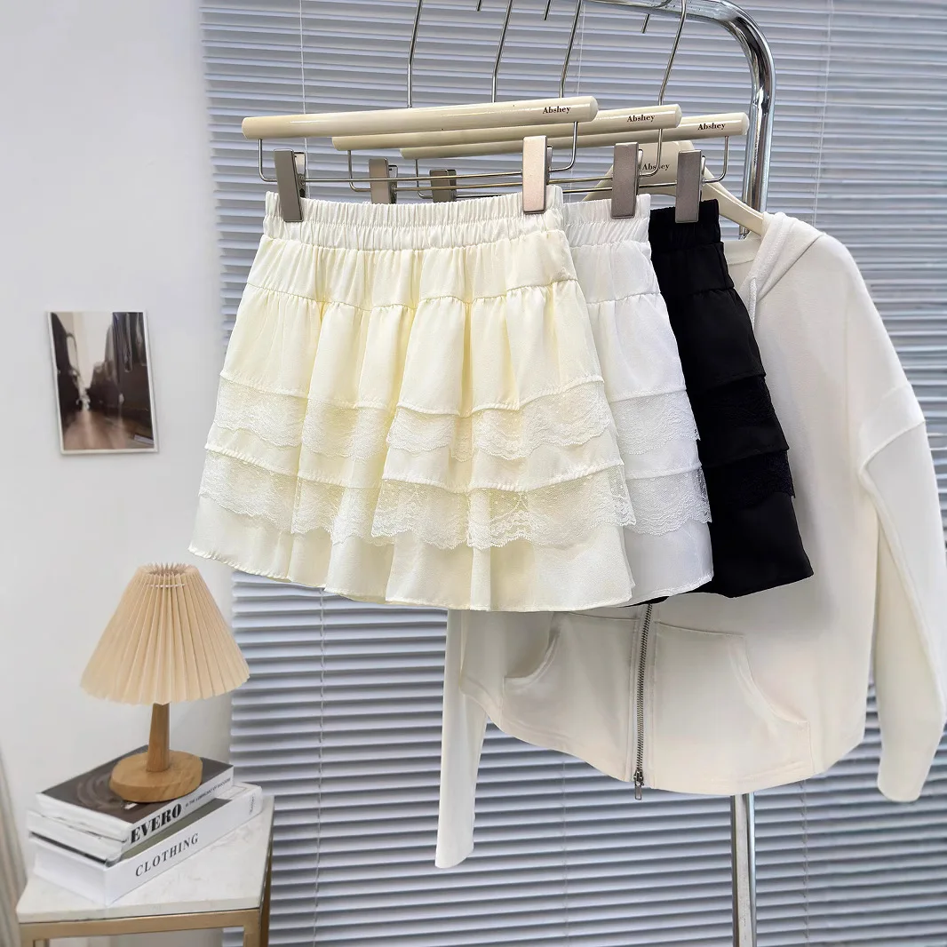 Czarna spódnica damska z koronkowym wykończeniem, falbanki, seksowna mini spódniczka satynowa, styl y2k, wiosna 2026, sukienka na imprezę z dużą kokardą.