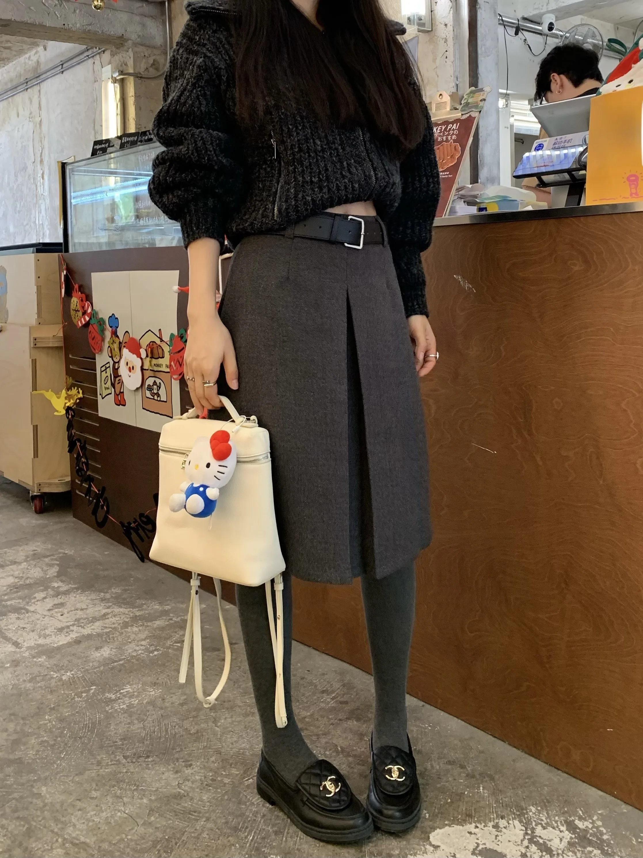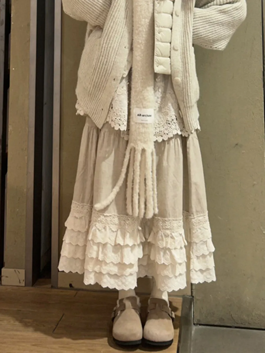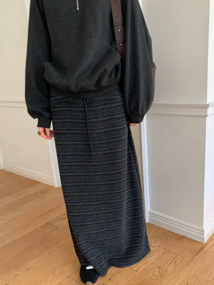 Koreańska spódnica ze sznurkiem, elastyczna, teksturowana, w paski, dopasowana, o średniej długości, dla kobiet, na jesień i zimę, do noszenia na co dzień.