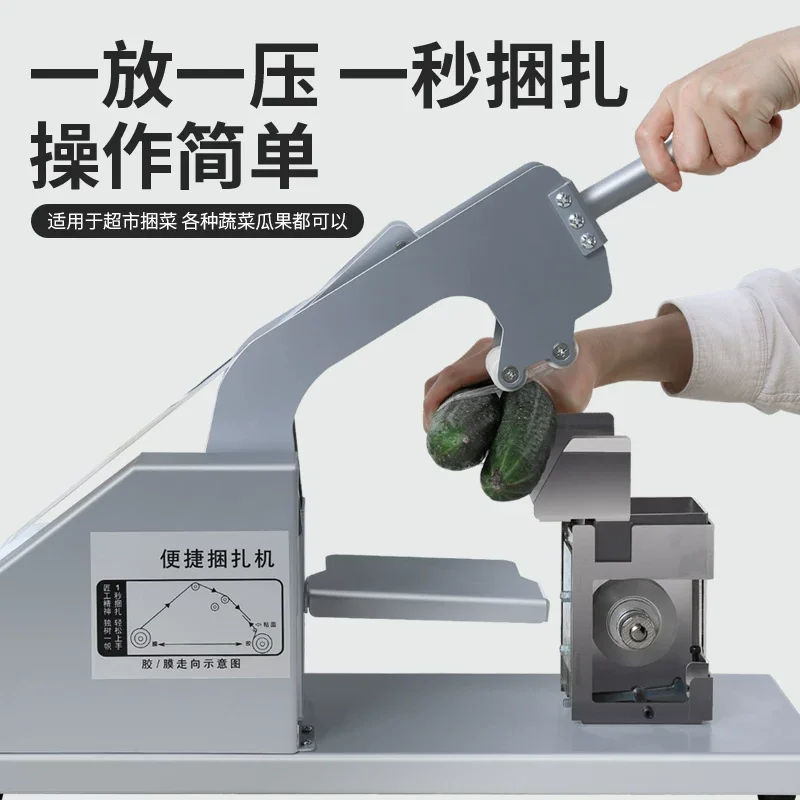 Przenośna maszyna do wiązania warzyw, narzędzie do pakowania, półautomatyczna maszyna do pakowania i wiązania małych porcji warzyw.