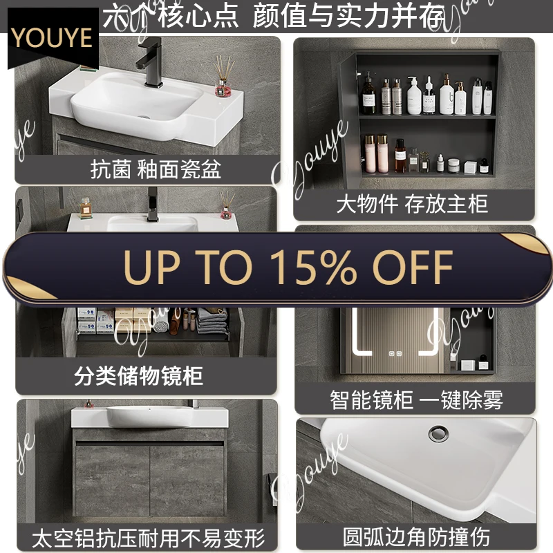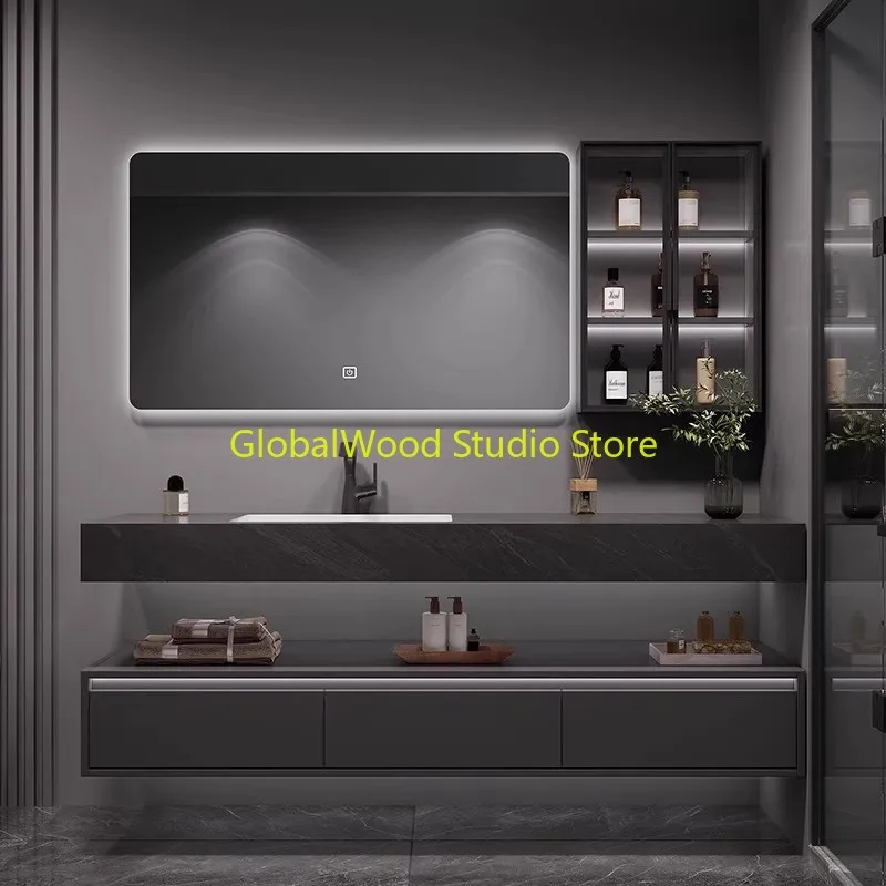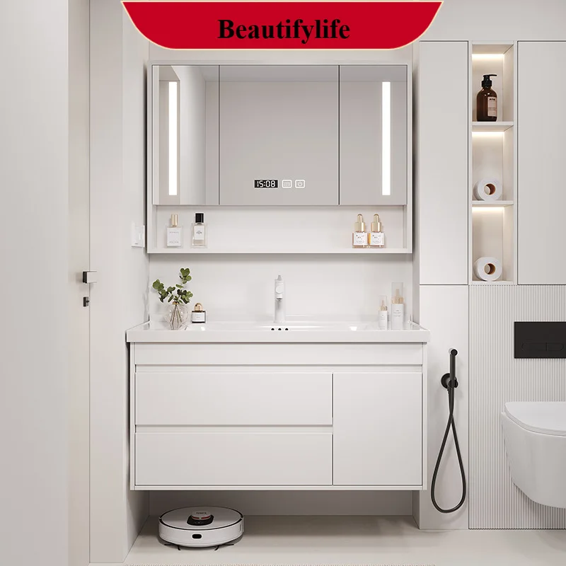 Nowy model szafki łazienkowej z ceramicznym blatem, umywalką, inteligentnym lustrem, toaletą, umywalką łazienkową z blachy, postmodernistyczny gabinete, unikalny fur.