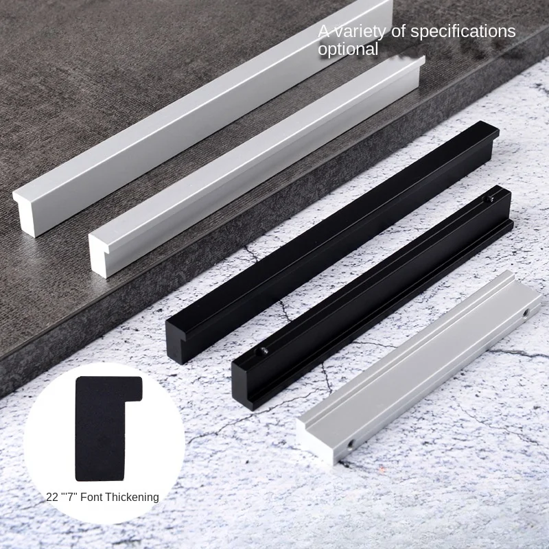 Uchwyt minimalistyczny w kształcie litery 7, ze stopu aluminium, pogrubiony, czarno-srebrny, w kształcie litery L, nowoczesny uchwyt do szuflad i drzwi szafek, o szerokości 50mm-1200mm.
