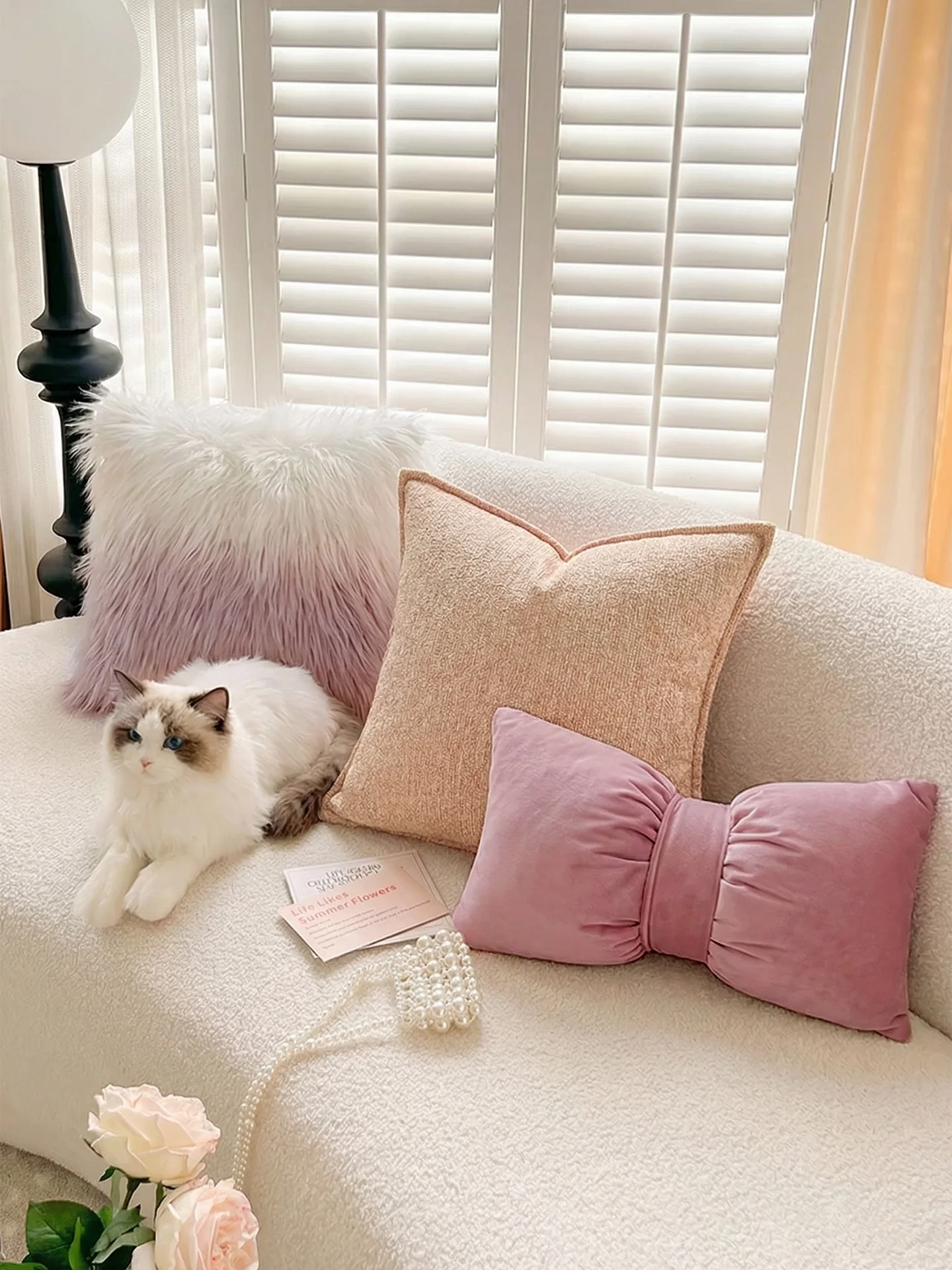 Różowa Poduszka z Aksamitu w Kształcie Węzła, Dekoracyjna Poduszka do Domu, Poduszka na Sofę do Salonu, do Sypialni, Poduszka z Aksamitu w Kształcie Łabędzia, Poduszka Pod Lędźwie